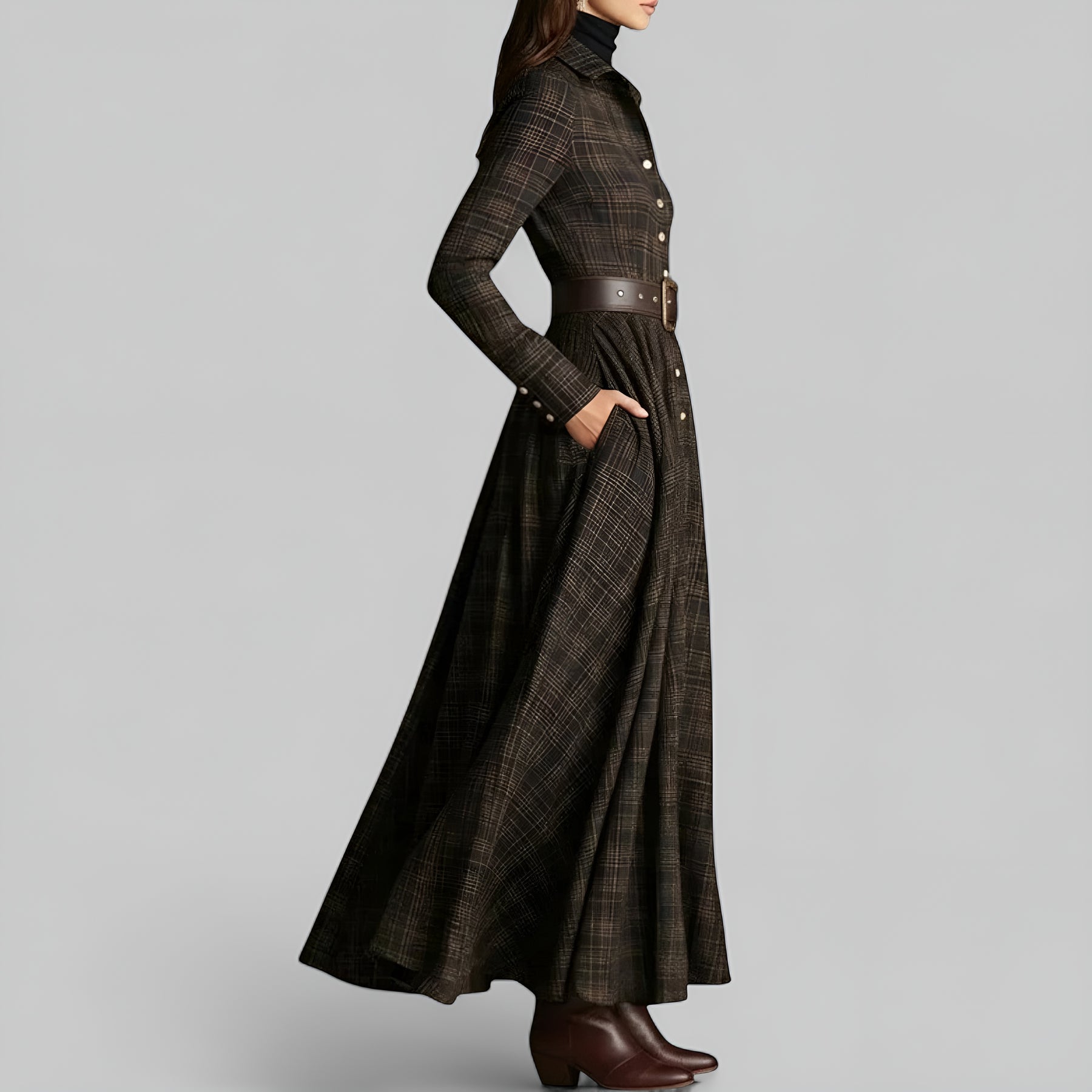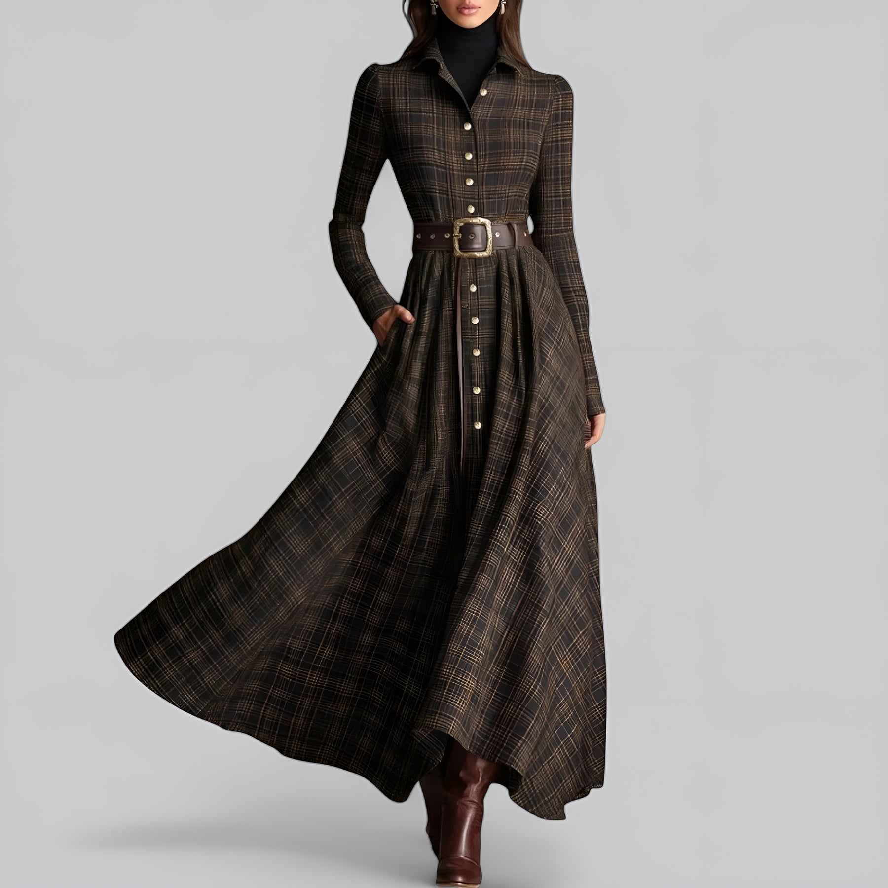Das Sarah™ Maxi-Kleid im Vintage-Stil vereint feminine Raffinesse, hochwertigen Komfort und klassische Schönheit. Hergestellt aus einem weichen, strukturierten Stoff mit einem zauberhaften Schottenmuster, umschmeichelt es deine Figur und lässt dich in jeder Situation strahlen.